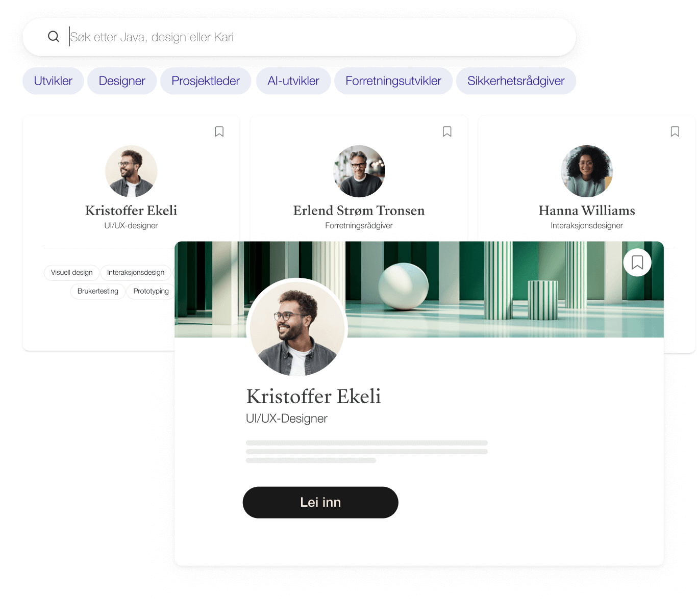 Gå rett på kompetanse. Folq gjør det enklere å finne kvalitetssikrede IT-konsulenter innen utvikling, design, AI og mer. Registrer deg og få tak kompetansen dere trenger blant over 2 500 konsulenter.